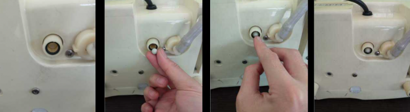 Ketika kita mencabut selang water supply, di dalam lubang tempat masuknya selang water supply tersebut ada bola kecil yang jika kita tidak hati-hati bisa jatuh keluar dan menggelinding. Jika bola kecil ini ikut keluar dari lubang tersebut, pastikan untuk dimasukkan lagi ke dalamnya.